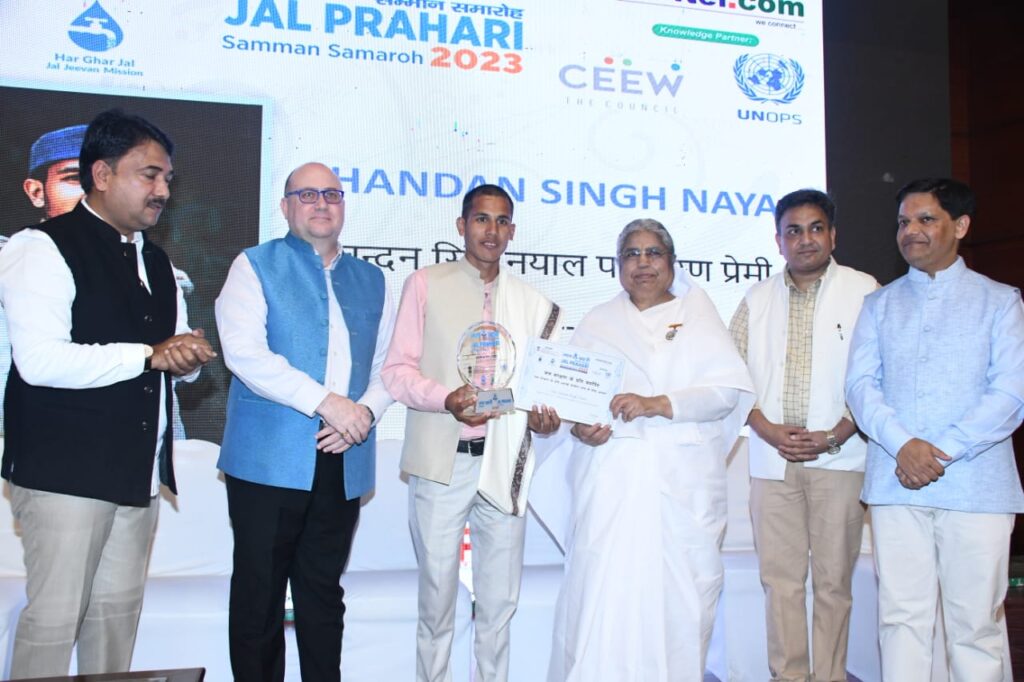 भीमताल (नैनीताल)। पर्यावरण और जलसंरक्षण के लिए ओखलकांडा के पर्यावरण प्रेमी चंदन नयाल को न्यू महाराष्ट्र सदन दिल्ली में जल शक्ति मंत्रालय भारत सरकार और सहयोगी संस्थाओं की ओर से जल प्रहरी का पुरस्कार देकर सम्मानित किया है। चंदन को जल प्रहरी का पुरस्कार केंद्रीय मंत्री गजेंद्र सिंह शेखावत ने दिया। नयाल को यह पुरस्कार 53 हजार से अधिक पौधे लगाने, 5000 से अधिक चालखाल, पोखर बनाने के साथ स्कूलों और विश्वविद्यालयों में पर्यावरण और जलसंरक्षण को लेकर जागरूक करने के लिए दिया गया है। चंदन ने शिक्षक की नौकरी छोड़कर पर्यावरण और जलसंरक्षण के लिए लगातार प्रयास किया है। उन्हें अभी तक कई पुरस्कारों से सम्मानित किया जा चुका है।