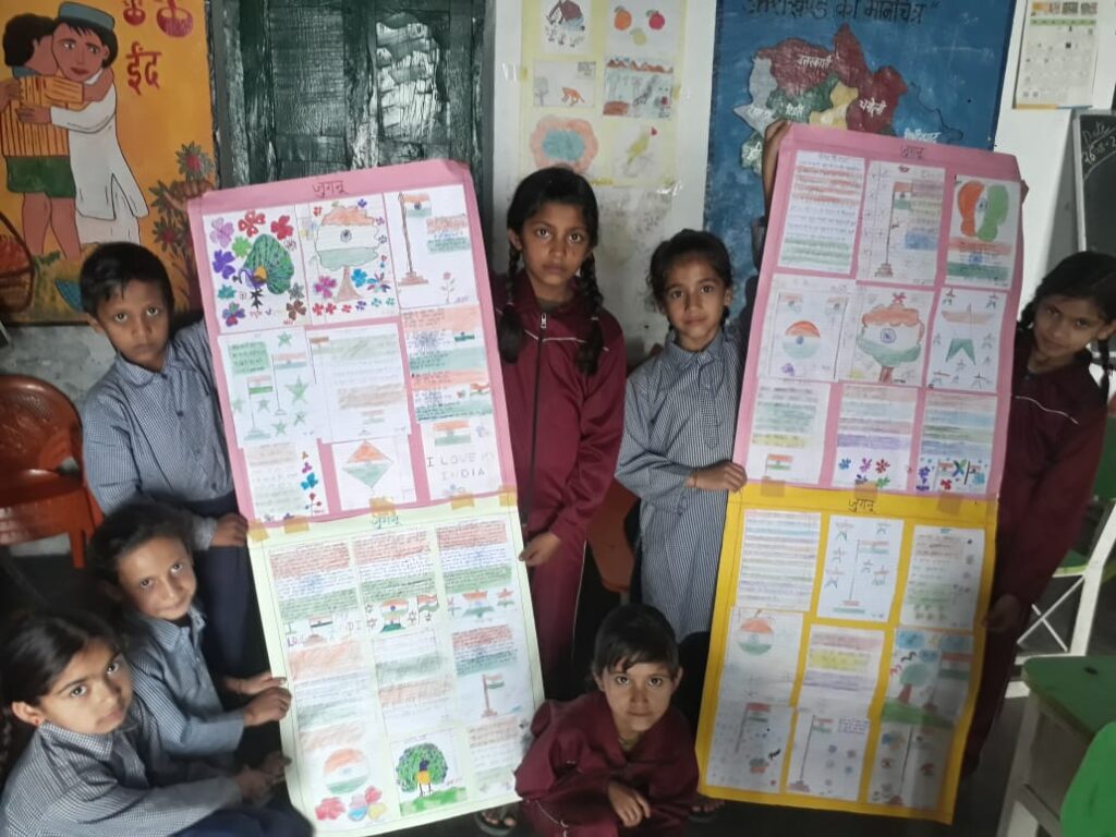 कैप्शन – छात्रो द्वारा दीवार पत्रिका के अन्तर्गत देशभक्ति पर बनायी गई पत्रिका