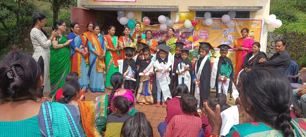 भीमताल (नैनीताल)। पोषण माह के तहत बाल विकास परियोजना भीमताल की ओर से क्षेत्र के आंगनबाड़ी केंद्रों के 11 बच्चों को विदाई दी गई। कार्यक्रम में बच्चों ने रंगारंग कार्यक्रम प्रस्तुत किए। आंगनबाड़ी केंद्रों से विदाई लेने बच्चों का प्रवेश प्राथमिक विद्यालय में होगा। विभाग ने केक काटकर बच्चों साथ खुशी जाहिर की। विभाग की ओर से बच्चों को पोषण शिक्षा किट वितरित की गई। कार्यक्रम में जिला कार्यक्रम अधिकारी मुकुल चौधरी, डॉ. रेनू मर्तोलिया, कैलाश वर्मा, जगदीश प्रसाद, पुष्पा रानी, हेमा मासीवाल शामिल रहे।