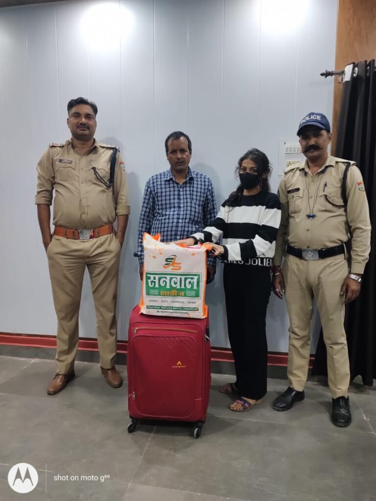 शादी की शॉपिंग कर हल्द्वानी से लौट रही संजना जोशी पुत्री प्रकाश चंद्र जोशी निवासी अल्मोडा के दो बैग जो भीमताल रास्ते में गाड़ी से कही गिर गए थे, भीमताल थाने में सूचना देने पर थाने में तैनात चीता कर्मचारी सुमित चौधरी व संजय नेगी ने रामलीला मैदान के पास से दोनों बैगों को बरामद कर संजना के सुपुर्द किया गया।