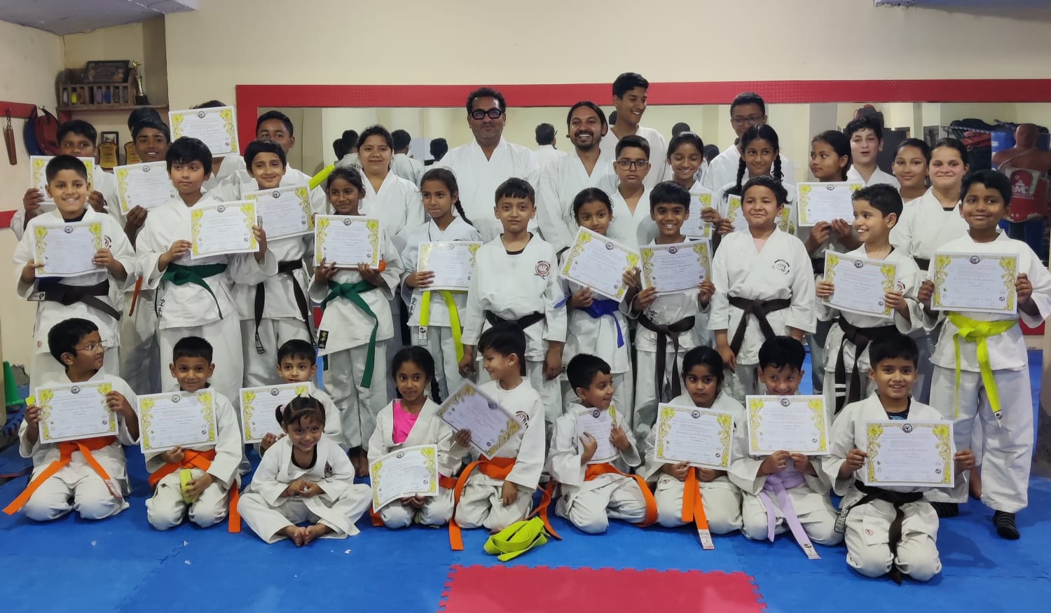 सान्वी गोस्वामी और तनिष्का गोस्वामी ने ब्लू बेल्ट, रुशंका रौतेला और मानवी राणा ने जूनियर ब्राउन बेल्ट,