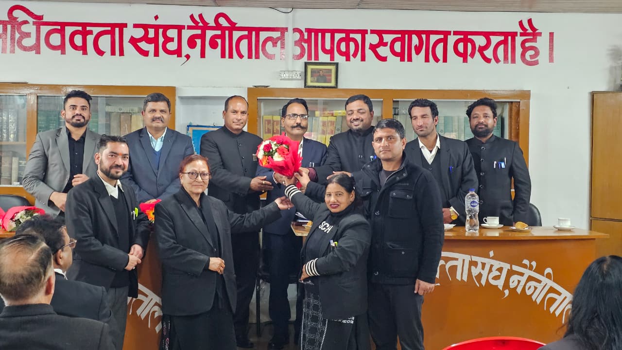 इस अवसर पर वरिष्ठ अधिवक्ता ओंकार गोस्वामी, राजेश चंदोला, प्रीति साह, मंजू कोटलिया, बी.के. सांगूड़ी, संजय कुमार संजू, राजीव साह, राजेंद्र कुमार पाठक, पंकज बिष्ट, प्रमोद बहुगुणा, अनिल बिष्ट, संजय त्रिपाठी, संजय सुयाल, नवीन पंत, राजेंद्र भैसोड़ा, पंकज कुमार, कमल चिलवाल, सुभाष जोशी, जयंत नैनवाल, दीपक पांडेय, पूरन बिष्ट, सोहन तिवारी, संजय बिष्ट, हरीश चंद्र आर्य, तरुण चंद्रा, निर्मल कुमार, प्रदीप प्रसाद, नरेंद्र बर्गली, रवि कुमार, यशपाल आर्य, गौरव भट्ट, मुकेश कुमार, चंद्रकांत बहुगुणा, मोहम्मद खुर्शीद, शिवांशु जोशी, तारा आर्या, कामिनी गंगवार, मुन्नी आर्या, सरिता बिष्ट, जया आर्या, भावना जंतवाल सहित अनेक अधिवक्ता उपस्थित रहे।