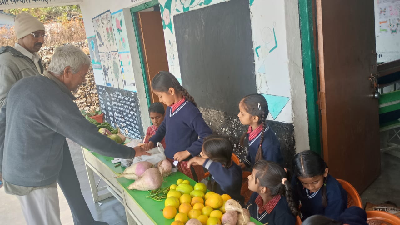 भीमताल । संकुल पिंनरो स्थित जीपीएस बांसा में छात्रों द्वारा घर में उत्पादित विभिन्न उत्पादों के स्टॉल विद्यालय में लगाए गए । छात्रों ने शिक्षकों और अभिभावकों को इन उत्पादों की जानकारी देने के साथ-साथ इनकी बिक्री भी की। छात्रों द्वारा स्टाल में अपने-अपने घरों से लाए विभिन्न सब्जियों ,फलों और मसालों को प्रदर्शित किया गया। शिक्षकों ने छात्रों से स्टॉल में लगाए गए विभिन्न उत्पादों की जानकारी ली तथा उन उत्पादों को खरीदा भी। कार्यक्रम में शिक्षक शंकर नाथ गोस्वामी, दीपक नौगाई सहित कुमकुम शर्मा, घनश्याम कुल्याल भगवती शर्मा ,कमल बृजवासी शामिल रहे।