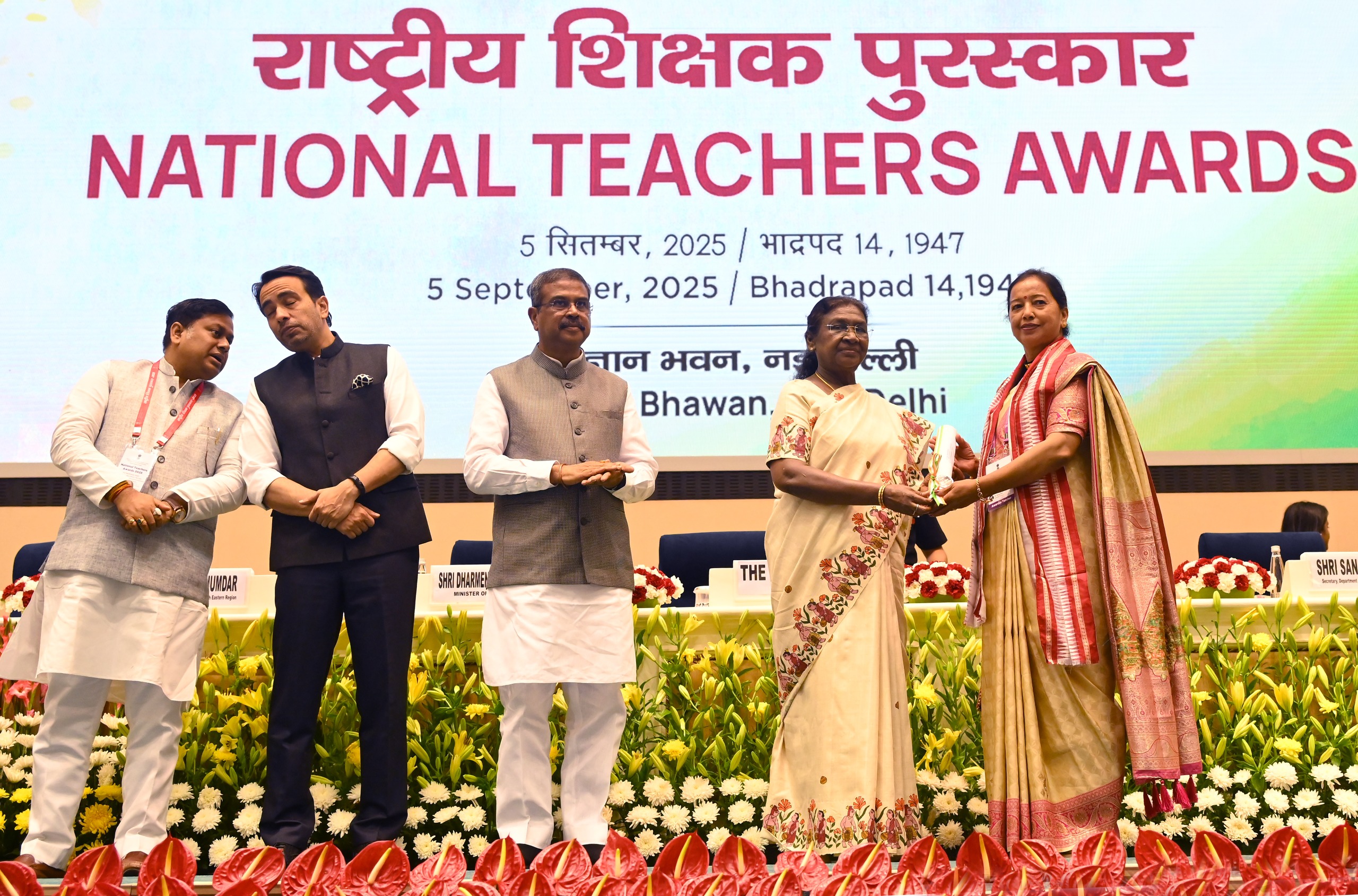 भीमताल । विज्ञान भवन में आयोजित राष्ट्रीय शिक्षक पुरस्कार-2025 समारोह में राष्ट्रपति द्रौपदी मुर्मू की उपस्थिति में केन्द्रीय शिक्षा मंत्री धर्मेन्द्र प्रधान ने देशभर के 45 उत्कृष्ट शिक्षकों को सम्मानित किया।