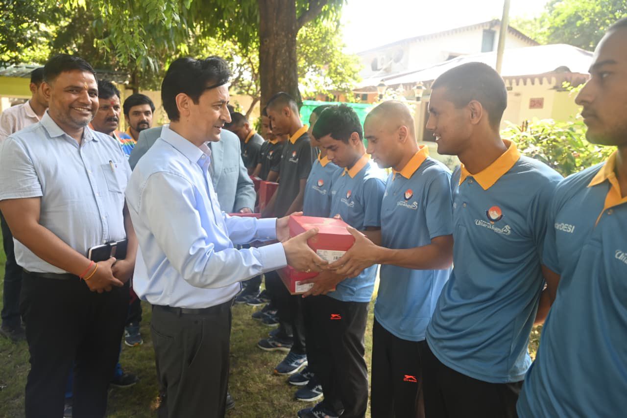 भीमताल । आयुक्त/सचिव मा. मुख्यमंत्री दीपक रावत की उपस्थिति में शनिवार को स्पोर्ट्स छात्रावास हल्द्वानी में फुटबॉल खिलाड़ियों को प्रोत्साहित करने हेतु एक विशेष कार्यक्रम आयोजित किया गया। इस अवसर पर मंगला ट्यूब कम्पनी के सहयोग से खिलाड़ियों को फुटबॉल शूज़ वितरित किए गए। आयुक्त दीपक रावत ने कहा कि मुख्यमंत्री के निर्देशानुसार खिलाड़ियों को समाज, संस्थाओं और जनप्रतिनिधियों से निरंतर सहयोग एवं प्रोत्साहन मिलना चाहिए। उन्होंने कहा कि जब खिलाड़ियों को सही समय पर सहयोग मिलता है तो उनके प्रदर्शन में सुधार होता है और आत्मविश्वास भी मजबूत होता है। उन्होंने यह भी उल्लेख किया कि प्रोत्साहन, प्रेरणा और समर्थन ऐसे सशक्त माध्यम हैं जो खिलाड़ियों को अपनी पूरी क्षमता के साथ राष्ट्रीय और अंतरराष्ट्रीय स्तर पर उत्कृष्ट प्रदर्शन के लिए प्रेरित करते हैं।