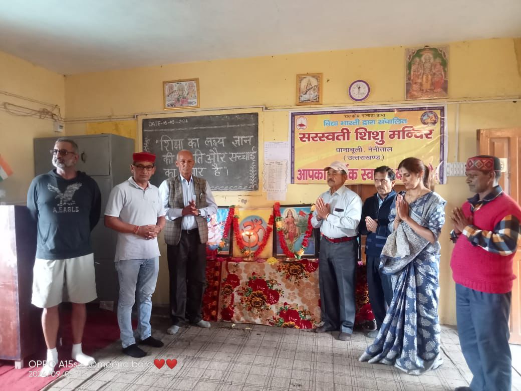 धानाचुली : सरस्वती शिशु मंदिर में देश के दूसरे राष्ट्रपति डॉ. सर्वपल्ली राधाकृष्णन की जयंती के अवसर पर शिक्षक दिवस बड़े धूमधाम से मनाया गया। इस अवसर पर विद्यालय में एक भव्य कार्यक्रम का आयोजन किया गया, जिसमें कई गणमान्य व्यक्तियों की उपस्थिति रही।