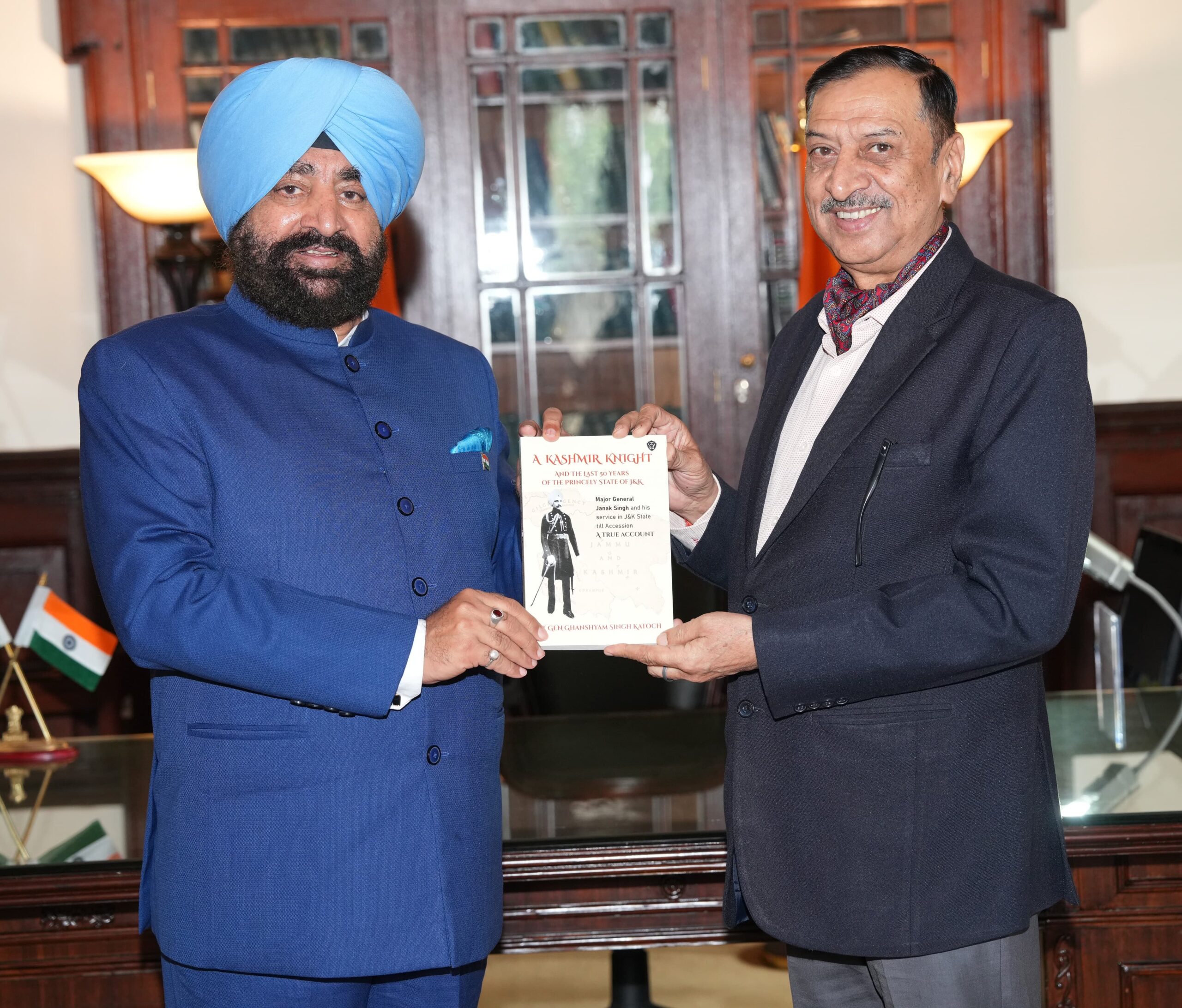 भीमताल : राज्यपाल लेफ्टिनेंट जनरल (से नि) गुरमीत सिंह से सोमवार को लेफ्टिनेंट जनरल जी.एस. कटोच (से नि) ने राजभवन नैनीताल में शिष्टाचार भेंट की। इस दौरान उन्होंने राज्यपाल को अपनी लिखी पुस्तक “A Kashmir Knight” की एक प्रति भेंट की। राज्यपाल ने पुस्तक के लिए उनका आभार व्यक्त किया और इसे प्रेरणादायक व राष्ट्रसेवा की भावना से परिपूर्ण बताया। भेंट के दौरान दोनों अधिकारियों के बीच सैन्य अनुभवों, उत्तराखण्ड में युवाओं की सेना में भागीदारी, तथा राष्ट्र सुरक्षा से जुड़े विषयों पर सारगर्भित चर्चा भी हुई।