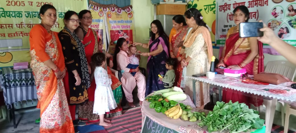 भीमताल। सोमवार को राष्ट्रीय पोषण माह के अंतर्गत धारी ब्लॉक के आंगनबाड़ी केंद्र में पोषण माह का आयोजन किया गया। कार्यक्रम में पोषण संबंधित स्टॉल लगाए गए। बाल विकास परियोजना अधिकारी नीता दीक्षित ने बालिकाओं व महिलाओं को संतुलित आहार के फायदे बताए गए। जंक फूड से होने वाले नुकसान के प्रति जागरूक कर विभागीय योजनाओं की जानकारी दी गई। ग्राम प्रधान सरोज ने महिलाओं को सशक्त बनने व 1098,181 हेल्पलाइन नंबर व गौरा एप की जानकारी भी दी गई। घरेलू हिंसा व बेटियों को स्वंय सशक्त बनने को कहा गया। कार्यक्रम में गोद भराई और अन्न पाषण की रश्म भी की गई। इस दौरान शिक्षिका कलावती बिष्ट, सारदा आर्या, चम्पा, सोभा, सावित्री आदि रहे।