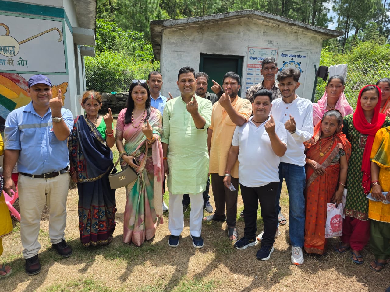 भीमताल : त्रिस्तरीय पंचायत सामान्य निर्वाचन-2025 के प्रथम चरण में भीमताल विधायक राम सिंह कैड़ा एवं ब्लॉक प्रमुख कमलेश कैड़ा ने ग्राम सभा कैड़ागांव (ओखलकांडा ब्लॉक) स्थित मतदान केंद्र पर पहुंचकर अपने मताधिकार का प्रयोग किया। मतदान के बाद दोनों जनप्रतिनिधियों ने क्षेत्रवासियों से लोकतंत्र के इस पर्व में निर्भय होकर मतदान करने की अपील की। उन्होंने कहा कि पंचायत चुनाव लोकतंत्र की नींव हैं और स्थानीय विकास में सीधा असर डालने वाले निर्णयों के लिए सक्रिय भागीदारी आवश्यक है। मतदान केंद्र पर शांतिपूर्ण एवं सुव्यवस्थित वातावरण में वोटिंग जारी रही।