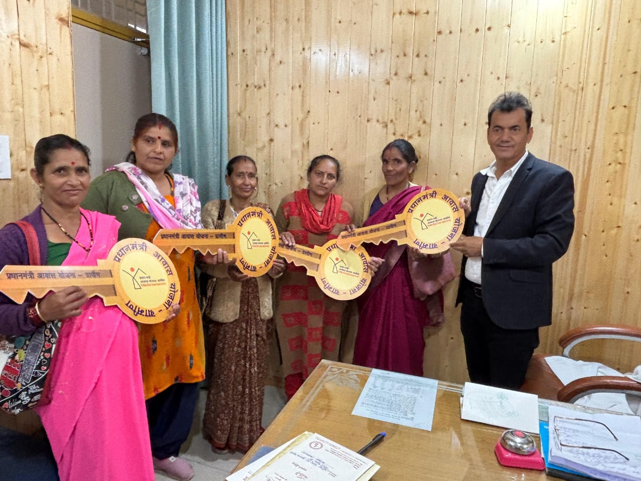 भीमताल। विकासखंड भीमताल में ब्लॉक प्रमुख डा हरीश सिंह बिष्ट ने प्रधानमंत्री आवास के लाभार्थियों लता जोशी, राधा पलड़िया, गीता पलड़िया, प्रेमा दानी, ज्योती नयाल सहित अन्य ग्रामीणों को चाबी वितरित की।उन्होंने कहा कि ग्रामीणों को परेशानियों का सामना नहीं करना पड़ेगा और वह आवास निर्माण छत के नीचे जीवन यापन करेंगे। इस दौरान प्रधान लता पलड़िया, हेमा आर्य, कमल गोस्वामी, बीडीओ महेश्वर अधिकारी, ग्राम विकास अधिकारी मोहन राम आर्य, ग्राम पंचायत अधिकारी सहित अन्य ग्रामीण मौजूद रहे।