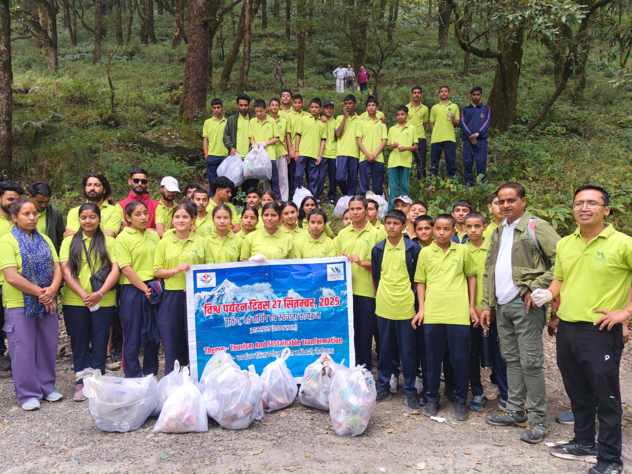 भीमताल । विश्व पर्यटन दिवस पर जिला पर्यटन विभाग नैनीताल की ओर से “टूरिज्म एंड सस्टेनेबल ट्रांसफॉर्मेशन” थीम के तहत विशेष कार्यक्रम आयोजित किया गया। टांकी बैंड से पंगोट स्थित ब्रह्मस्थली मंदिर तक ट्रैकिंग का आयोजन किया गया, जिसमें भारतीय शहीद सैनिक राजकीय पॉलिटेक्निक के एनसीसी कैडेटों समेत 80 से अधिक युवाओं ने भाग लिया।