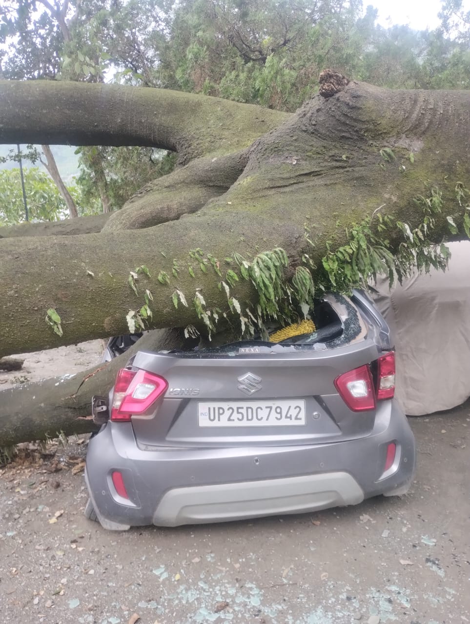 भीमताल। नौकुचियाताल मार्ग पर केंद्रीय विद्यालय के अंदर स्थित एक एक विशालकाय पेड़ के मंगलवार की रात गिरने से पेड़ स्कूल के अंदर खड़ी दो कारों को भारी नुकसान पहुंचा है। गनीमत रही की पेड़ रात के समय गिरा अगर सुबह गिरा होता तो बच्चों और अन्य लोगों के लिए खतरा बन सकता था। पेड़ के गिरने से स्कूल परिसर में स्थित पंप हाउस में पेयजल आपूर्ति भी बंद रही। इससे लोग पानी के लिए परेशान रहे। निर्वतमान चेयरमैन देवेंद्र सिंह चनौतिया, सभासद रामपाल सिंह गंगोला ने कहा कि पेड़ मंगलवार की देर रात गिरने से बड़ा हादसा टल गया। लेकिन दो कारों को बेहद नुकसान पहुंचा है। उन्होंने वन विभाग के अधिकारियों को फोन कर नगर क्षेत्र में खतरा बने पेड़ों को जल्द से जल्द लॉपिंग या काटने की मांग की है।