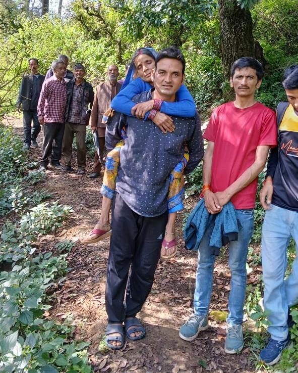 भीमणाल। पर्वतीय क्षेत्रों में स्वास्थ्य सुविधाओं के साथ सड़क नहीं होने के चलते मरीजों को अपनी जान गंवानी पड़ रही है। लेकिन सरकार और विभाग ग्रामीणों की समस्या को हल नहीं कर पा रहे हैं। धारी तहसील की ग्राम पंचायत बिरसिंग्या में शनिवार को बीमार नंदी देवी को ग्रामीण पांच किमी तक पैदल पीठ पर रखकर गांव के मुख्य सड़क तक लाए। जहां से महिला को निजी वाहन से बीस किमी दूर पदमपुरी सामुदायिक स्वास्थ्य केंद्र में भर्ती कराया। ग्रामीणों ने आरोप लगाया कि सड़क निर्माण की मांग करने के बाद भी सड़क का निर्माण नहीं हो पा रहा है। उन्होंने कहा कि सड़क नहीं होने से पांच किमी पैदल चलकर मुख्य सड़क तक आना पड़ रहा है। ग्रामीणों ने गांव में सड़क नहीं होने से युवा गांव से पलायन करने को मजबूर हैं। महिला को सड़क तक लाने वालों में समाजसेवी धर्मपाल, सुरेश चंद्र, विद्यासागर, दयालराम, सुभाष चंद्र, हरीश चंद्र, हेम बेलवाल, बसंत बल्लभ, प्रकाश चंद्र शामिल रहे।