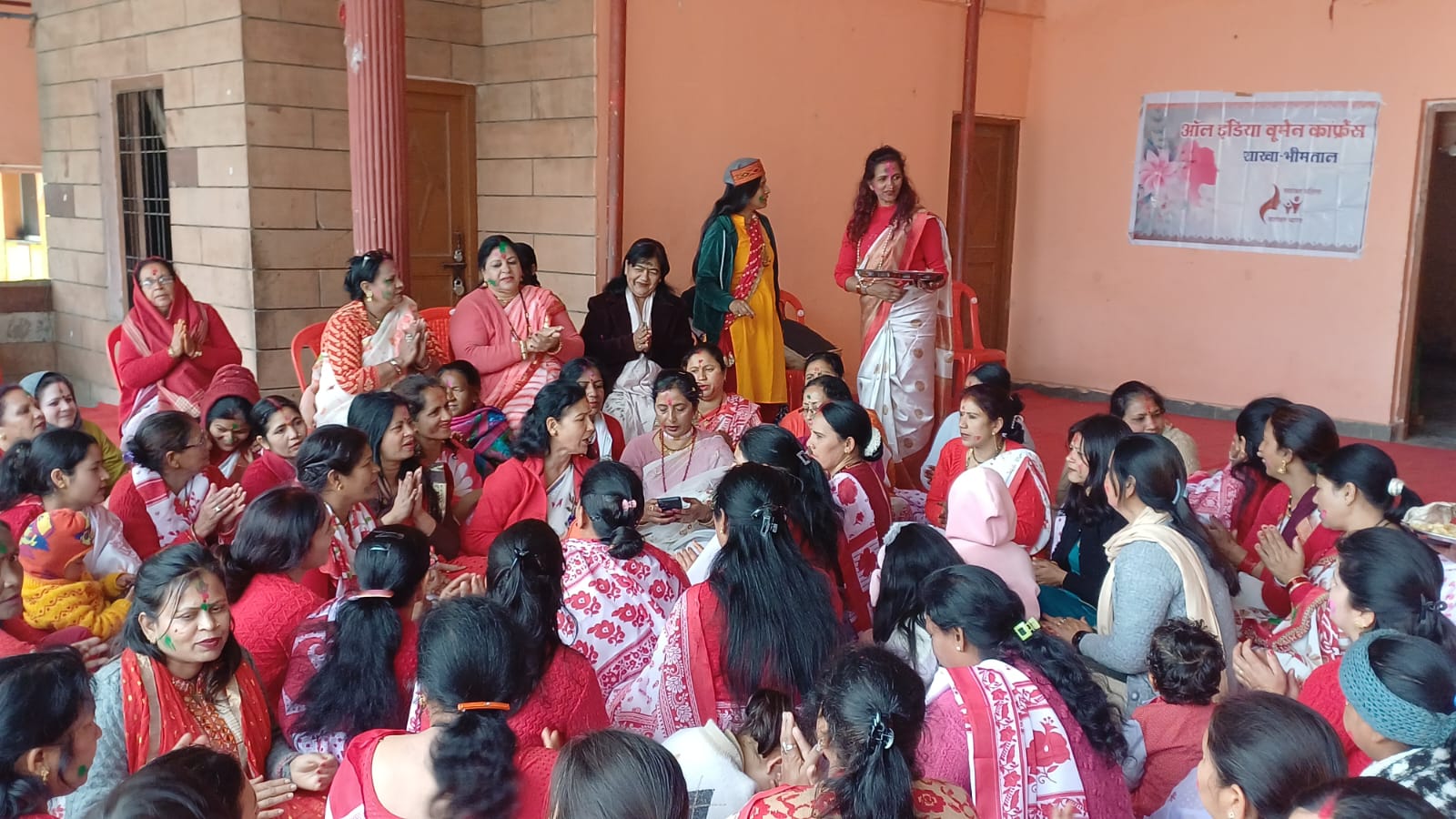 भीमताल । रामलीला मैदान मल्लीताल में बुधवार को महिलाओं की होली की धूम रही। महिला कल्याण समिति और ऑल इंडिया वूमेन कॉफ्रेंस की ओर से होली का आयोजन किया गया। होली में महिलाओं ने अबीर उड़ता गुलाल उड़ाता, मत मारो पिया होली आई रहे ‘ के गीतों में ठुमके लगाए। महिलाओं ने अबीर और गुलाल का टीका लगाकर होली की बधाई दी। समिति अध्यक्ष आशा उप्रेती ने कहा कि समिति की ओर से हर साल होली का आयोजन किया जाता है। होली में चेयरमैन सीमा टम्टा, पूर्व चेयरमैन देवेंद्र सिंह चनौतिया, बीना आर्या, नीमा नेगी, आशा आर्या, भावना पांडे, निर्मला आर्या, शुभम नैनवाल आदि महिलाएं शामिल रही।